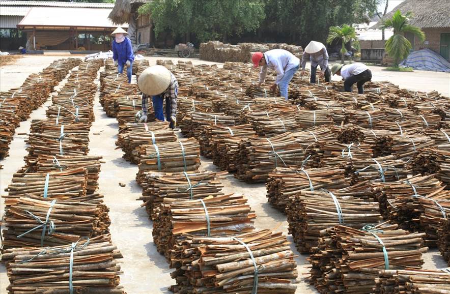 Vỏ quế được phơi khô chuẩn bị bán cho các công ty thu mua chế biến